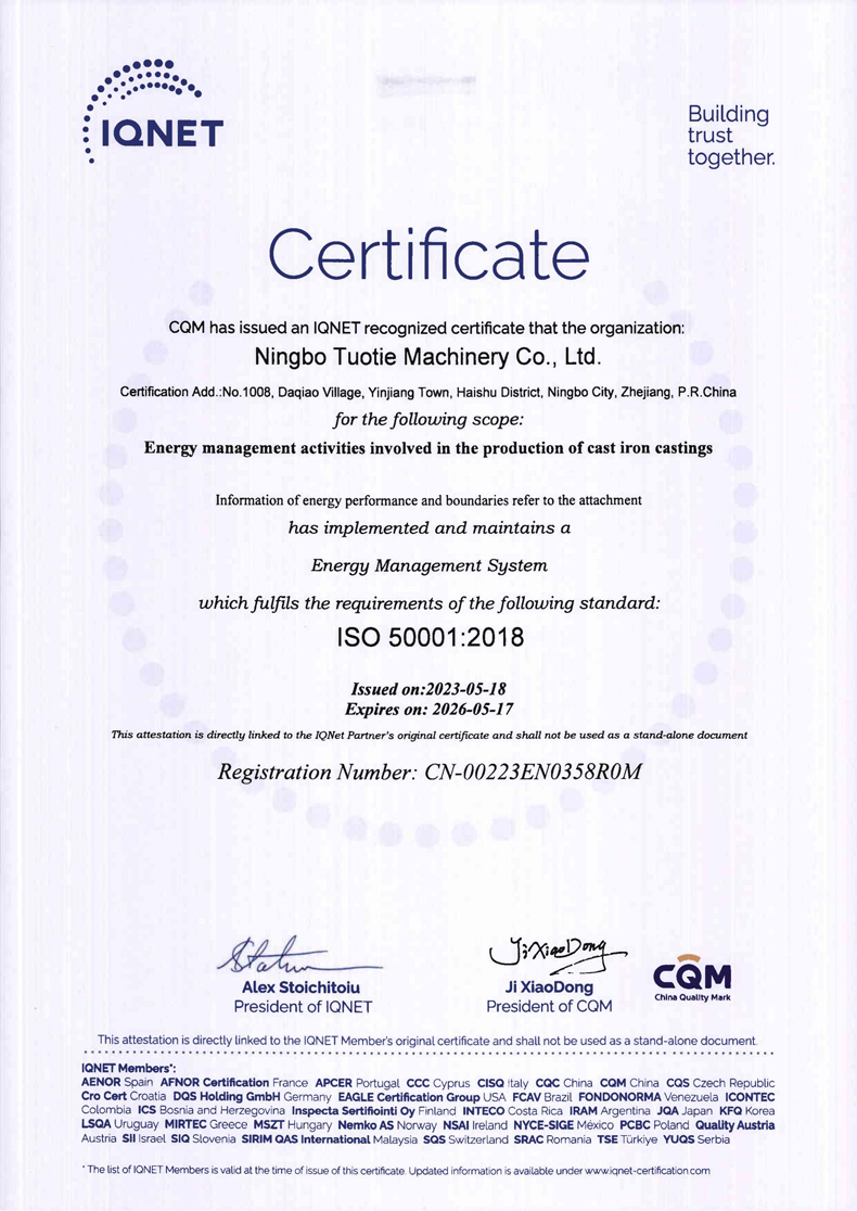 T Foundry (Ningbo Tuotie Machinery Co., Ltd.) is a high-tech enterprise certified by the state, a professional foundry which has annealing and machining ability, located next to the expressway network in Ningbo China. Its total investment reaches 200 million RMB, where environmental protection facilities’ investment exceeds 20 million RMB.The ....
