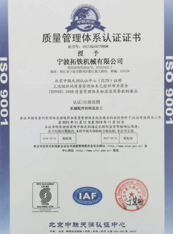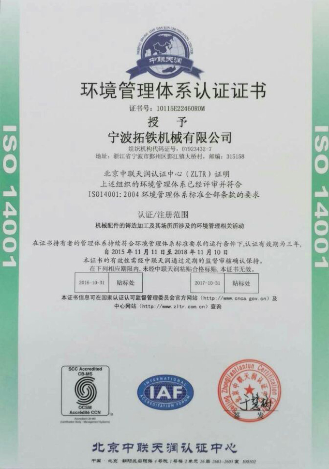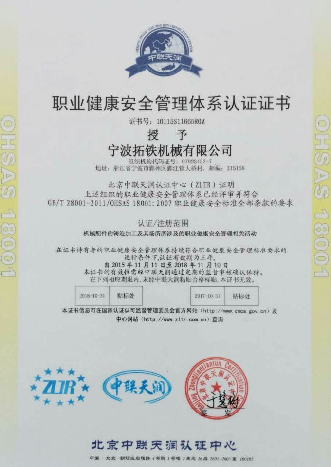 2015年11月,WB.COM万搏机械获得国家ISO9001质量管理体系认证,ISO14001环境管理体系认证和OHSAS18001职业健康安全管理体系认证。